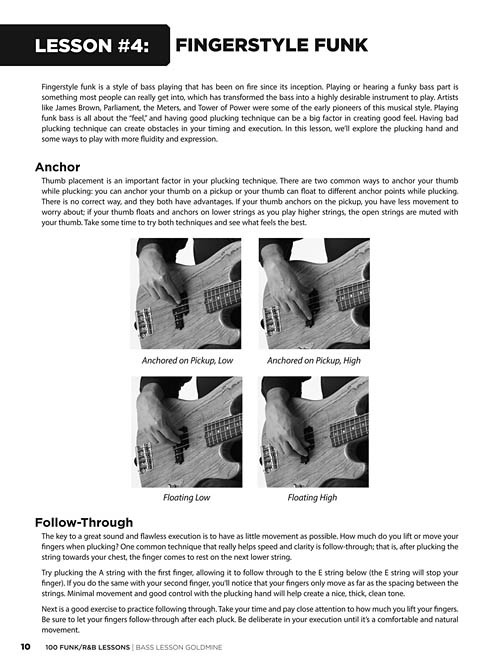 Expand your bass knowledge with the Bass Lesson Goldmine series! Featuring 100 individual modules covering a giant array of topics, each lesson in this Funk/R&B volume includes detailed instruction with playing examples presented in standard notation and tablature. You'll also get extremely useful tips, scale diagrams, chord grids, photos, and more to reinforce your learning experience plus Audio Online featuring performance demos of all the examples in the book!