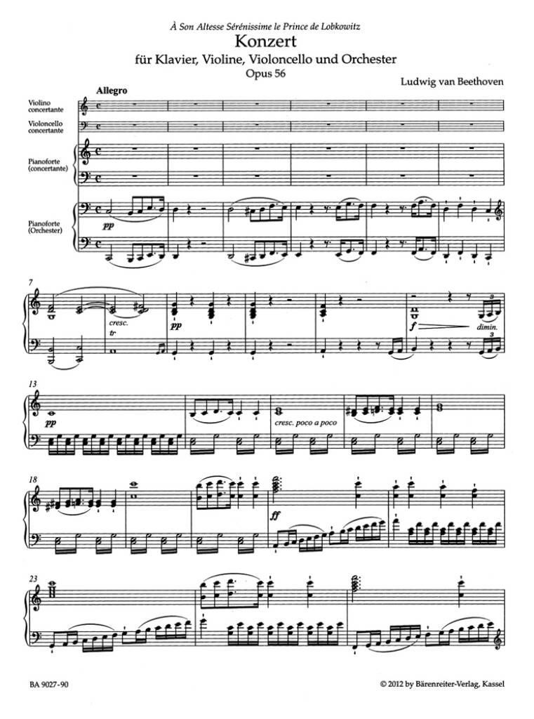 Beethoven’s treatment of the trio is pioneering: he does not apply a typical piano trio setting in contrast to the orchestra, but varies his treatment of the solo parts, allowing each instrument to play alone with the orchestra (particularly the cello), using two solo instruments together in ever new combinations, and finally bringing together all threeinstruments with the orchestra.