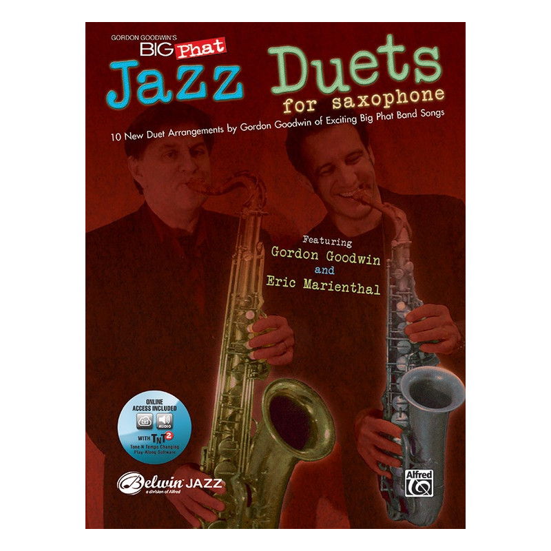 Composed and arranged by Gordon Goodwin at the medium-advanced to advanced level, these 10 saxophone duets are completely interchangeable for any combination of E-flat or B-flat saxophones. You can play with a duet partner or use the recording to play duets with great saxophonists Gordon Goodwin (tenor sax) or Eric Marienthal (alto sax). Also included is TNT 2 software which lets you mute either part so that you can play along. TNT 2 also allows you to slow the tempo down for practice.