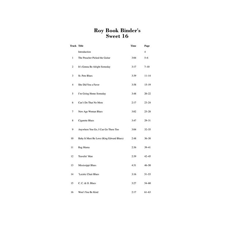 A seasoned vet with a unique sound, Roy Book Binder has been singing, playing guitar, and writing songs since the '60s. This book presents traditional and original blues tunes that have delighted his audiences for years. Features great lessons & an intro from Roy, note-for-note transcriptions with tab, and access to online audio files of recorded examples to make learning easier.