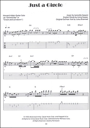 Questo libro contiene trascrizioni nota per nota sia in notazione standard che in tab delle interpretazioni e improvvisazioni di Howard Django-esque di standard classici degli anni '30, nonché brani originali per chitarra solista scritti dal direttore musicale di lunga data di Woody, il pianista jazz Dick Hyman.