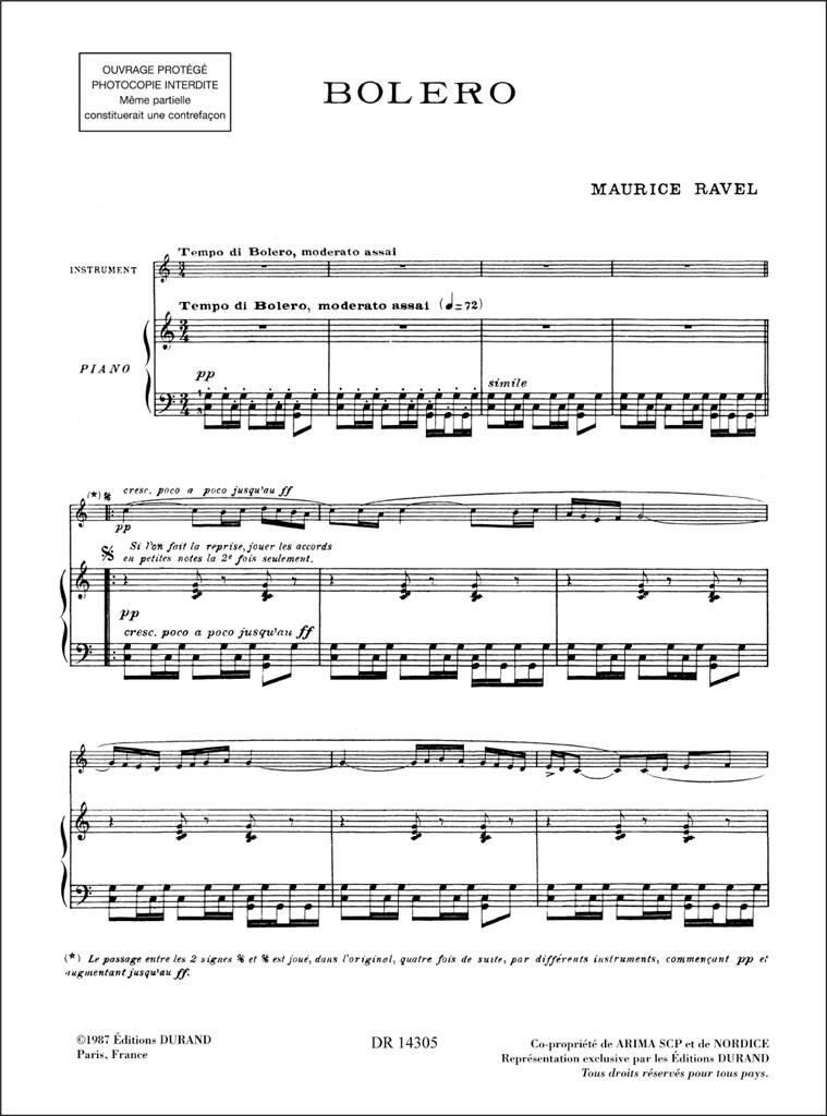 Maurice Ravel's ever popular Bolero transcribed for Clarinet And Piano by Patrice Fouillaud.