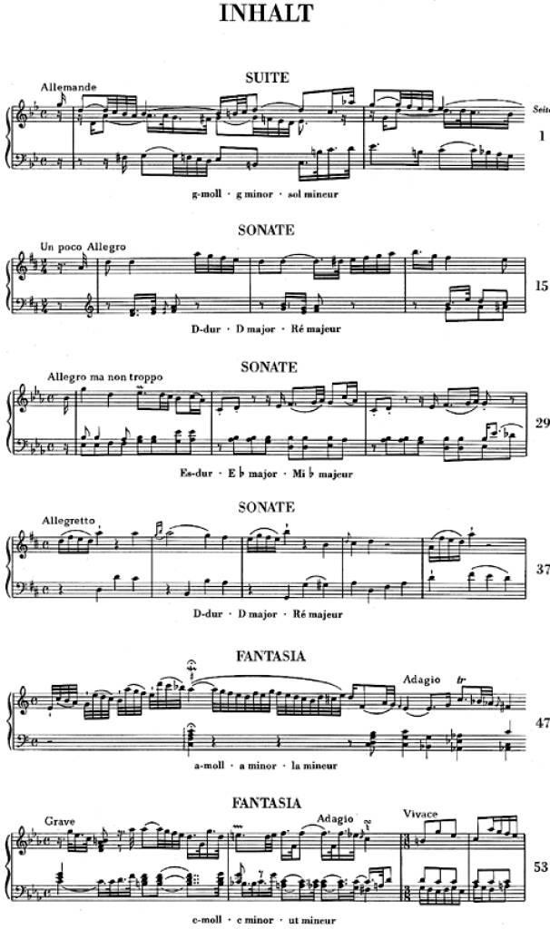 La Suite in sol minore è ancora influenzata dal barocco. Le due Sonate in re maggiore, con le loro idiosincrasie galanti e capricciose, richiedono grande attenzione da parte dell'esecutore, mentre la Sonata in mi bemolle maggiore, pubblicata nel 1748, anticipa già Haydn nell'elaborazione dei suoi temi.